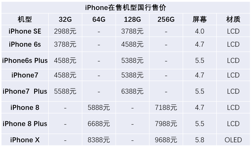 产品售价也和此前推测的一样,999美元起,国行版8388元起。iPhone8/Plus除了采用玻璃机身,A11仿生处理器之外,外观和大小同iPhone7/Plus一样。售价分别为5888元起和6688元起。而iPhone7/Plus以及iPhone6s的售价都同步下调。