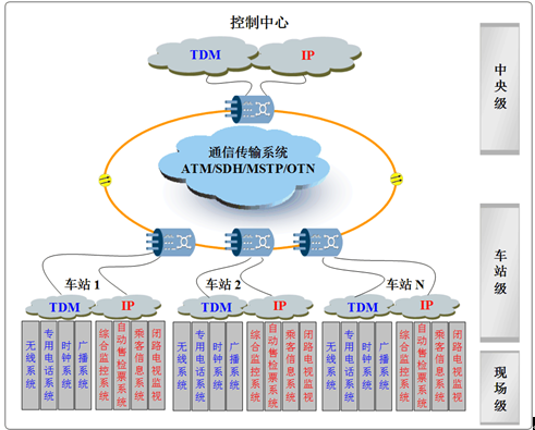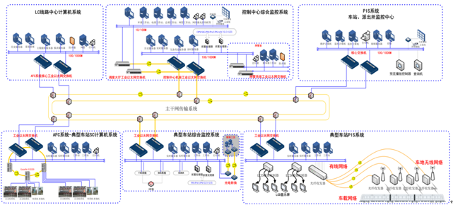 轨道交通行业通信系统网络的建设直接关系到整个轨道交通运营的安全性,轨道交通行业通信系统网络由骨干网络即传输系统以及各个子系统网络构成,各系统既各自独立又相互关联。如下图所示: