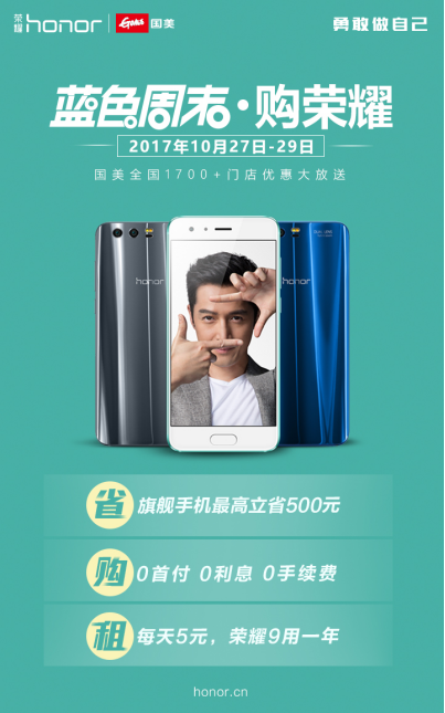 上个月荣耀携手乐语2000+门店的线下促销活动蓝色周末购荣耀,吸引大量消费者到店,现场销量十分可观。据悉,仅仅三天,荣耀在乐语门店总销量增长400%。现在,蓝色周末购荣耀又要开启新一波的高潮,10月27—29日,荣耀品牌将联合国美在线下开展荣耀品牌日活动。
