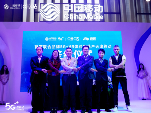 随后,咪咕互动娱乐有限公司联合中国移动通信集团天津有限公司,与杭州竟盟信息技术有限公司三家共同宣布,首家咪咕X竟盟联合品牌体验店——头号玩咖+咪咕联合品牌一号店将落户天津移动,并推出首个5G+VR 定制套餐。随后,展会现场和全国首家咪咕竟盟品牌联合店-天津南开大悦城门店,进行了2V2实时对战。