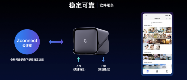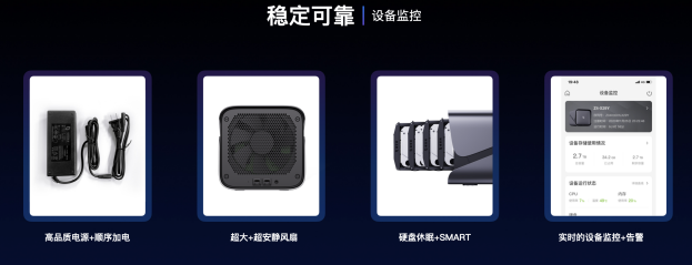为提供稳定可靠的使用体验,极空间配备高品质的电源,在设备启动时采用非常精细的硬盘顺序加电安全保护机制,并提供硬盘休眠机制和定期的S.M.A.R.T检测功能,还可以对设备运行情况进行全程监控和告警机制,像远程重启、远程关机、意外断电自动重启功能等贴心小功能,保证设备可以7×24小时稳定在线运行。软件层面则通过“Zconnect极连接”技术保证手机、电脑、电视等终端在各种网络状态下,都可以快速、稳定的连接到极空间私有云,无需申请外网IP、无需复杂配置、更无需额外支付费用。