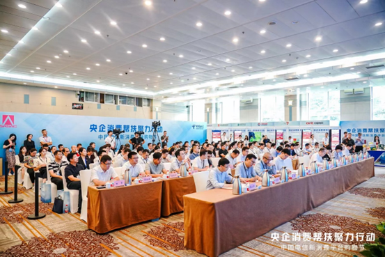本次活动中,中粮集团、中国煤炭科工、中盐集团、中国通号、中国中铁、中国国新和央企消费帮扶电商平台7家单位共同参与中国电信新消费平台购物节直播互动,现场带货乡村振兴商品。