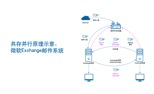 Coremail支持将IBM Domino、微软Exchange等国外邮件系统进行升级替换,不依赖国外厂商技术与服务,就能够通过共存并行、数据迁移等步骤,将原有的邮件系统能力陆续迁移至Coremail中实现替换。