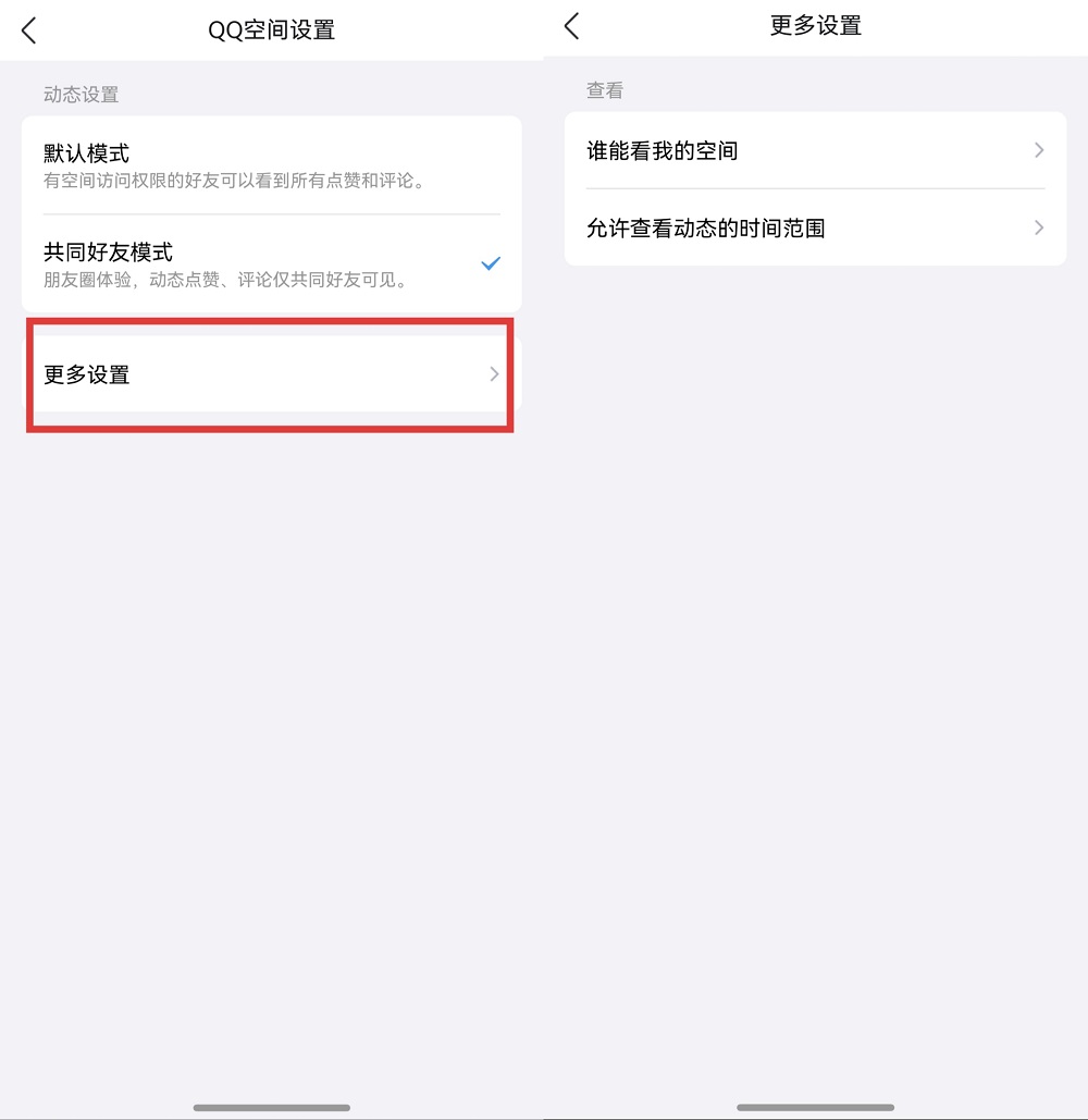 • 新增空间动态权限设置:通过空间设置中的“更多设置”选项,可以灵活选择默认模式或共同好朋友模式,并详细管理动态可见范围和动态的查看时间范围,空间的开放规则,由你定义!