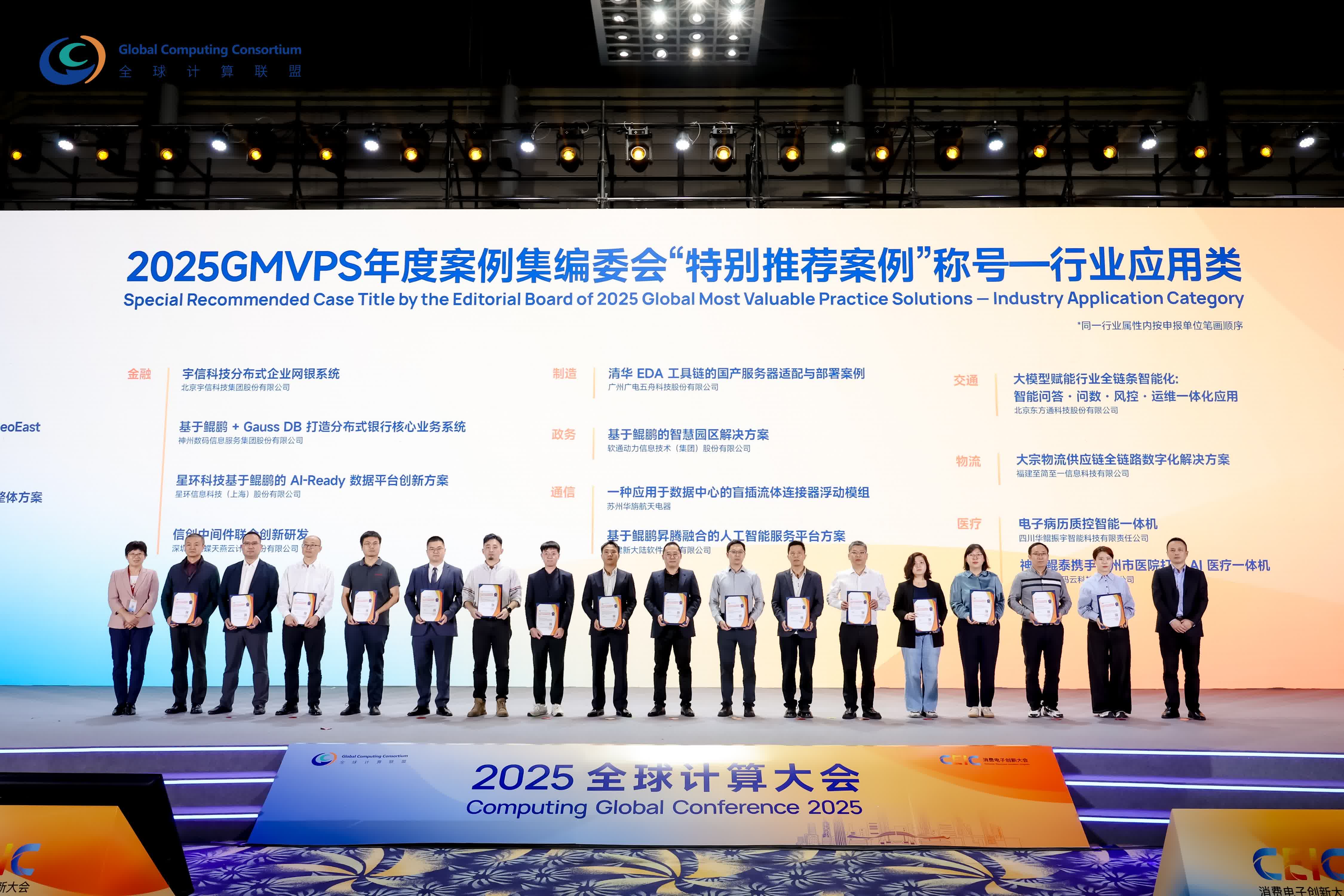 11月7日, 2025 全球计算大会(CGC)期间,由全球计算联盟(GCC)主办的 “2025 年度全球计算产业应用案例汇编(GMVPS)” 正式发布,同期揭晓 “编委会特别推荐” 称号及入册案例名单。作为连续成功举办四届的产业专项,本次活动以近60份申报案例的规模、跨十余个行业的覆盖广度,再度成为全球计算产业创新的 “年度风向标”。