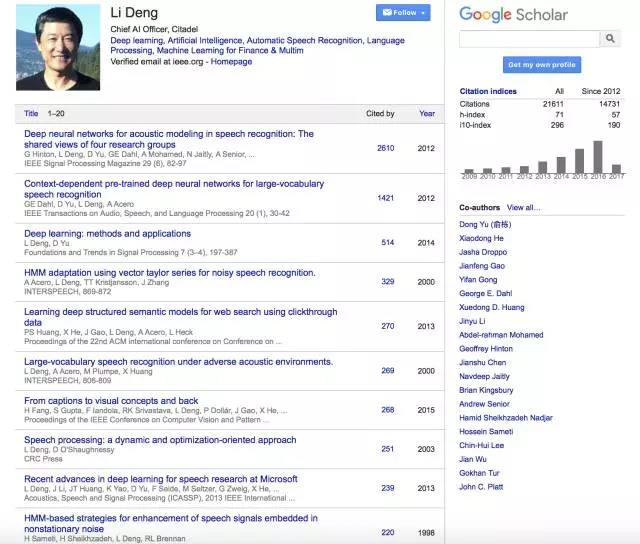 作为深度学习、人工智能、自然语言理解与语音识别方面的专家,邓力早在2009 年就同Geoffrey Hinton 教授合作,首次提出并将深度神经网络应用到大规模语言识别中,显著提高了机器对语音的识别率,极大推动了人机交互领域的发展与进步。目前,邓力的研究方向主要为应用于大数据、语音、文本、图像和多模态处理的深度学习和机器智能方法。在语音、NLP、大数据分析、企业智能、互联网搜索、机器智能、深度学习等领域,邓力曾获70 多项美国或国际专利。同时,他还获得过IEEE、国际言语通讯协会、美国声学协会、亚太信号与信息处理协会、微软等组织授予的多项荣誉。2015 年,凭借在深度学习与自动语音识别方向做出的杰出贡献,邓力获IEEE 技术成就奖。