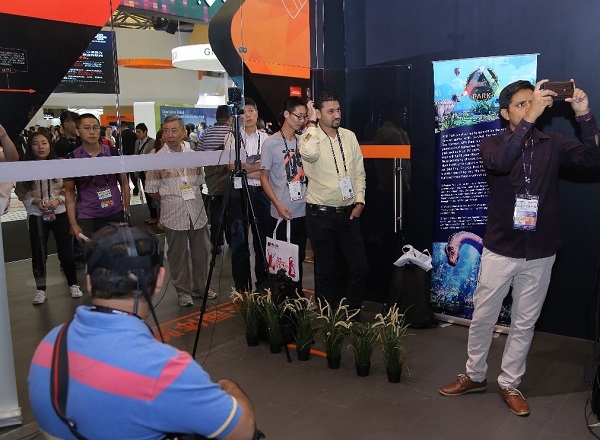 去年MWCS,蜗牛的VR直播体验就让人大开眼界,这一次他们更是带来了全新的VR游戏《方舟公园》,现场体验区人头攒动,吸引了众多嘉宾排队试玩。