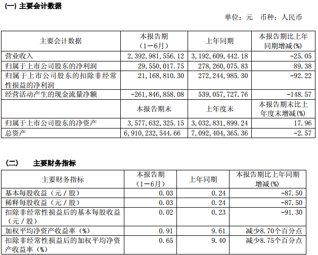 8月21日,亿晶光电科技股份有限公司(以下简称“亿晶光伏”或“公司”)发布2017 年半年度报告。报告显示,报告期内,公司实现营业收入 239,298.16 万元,较上年同期减少 25.05%;营业利润 2,005.94万元,较上年同期减少 93.61%;归属于上市公司股东的净利润 2,955.00 万元,较上年同期减少89.38%。