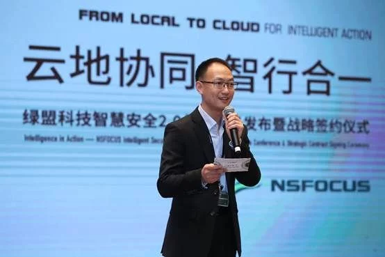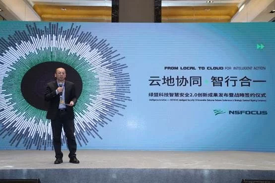 绿盟科技高级副总裁叶晓虎博士在致辞中说,“智慧安全2.0”战略,是绿盟科技对于未来网络安全发展方向的预见与前瞻。“智慧安全2.0”战略不仅为绿盟科技带来了更大的发展空间,也为绿盟科技注入了“快公司”基因,成为绿盟科技快速发展的引擎。“云地协同•智行合一”正是“智慧安全2.0”战略的最佳实践。