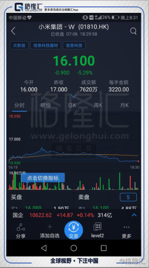 昨日港股收市后,根据辉立的暗盘交易平台显示,小米暗盘收报16.1港元,较招股价跌5.9%,好于市场普遍预期。不过,从成交额来看仅不到1000万美元并不高,对市场的实际走向指导意义不大。
