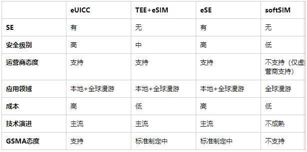 eSIM的主流方案,除了前面提到的实体芯片(eUICC、eSE)外,还有无实体芯片eSIM(TEE),以及纯软件方案(softSIM)。其中eUICC是目前GSMA承认的标准eSIM方案,依托于硬件实现,安全级别高,早在2016年GSMA就公布了基于eUICC的远程SIM配置规范。