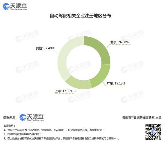 天眼查专业版数据显示,我国有数百家产品标签为“自动驾驶、智能驾驶、无人驾驶”,且状态为在业、存续的企业(以下简称为“自动驾驶相关企业”),主要分布在北京、广东和上海,三个地区的企业总数占全国相关企业总数的62.60%。