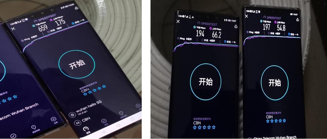 图2 湖北广电4.9G终端测速(左)湖北广电700M终端测速(右)