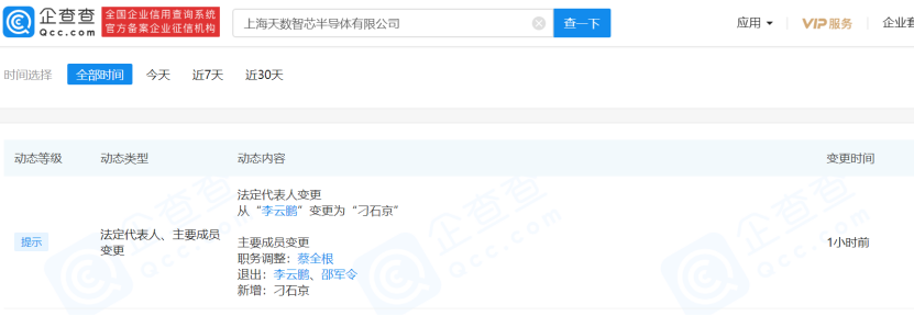 通信世界网消息(CWW)企查查显示,5月27日,上海天数智芯半导体有限公司(以下简称“天数智芯”)发生多项变更,包括法定代表人、主要成员变更。法定代表人从“李云鹏”变更为“刁石京”,主要成员变更:李云鹏、邵军令退出,新增刁石京。同时,刁石京担任天数智芯董事长、总经理职务。