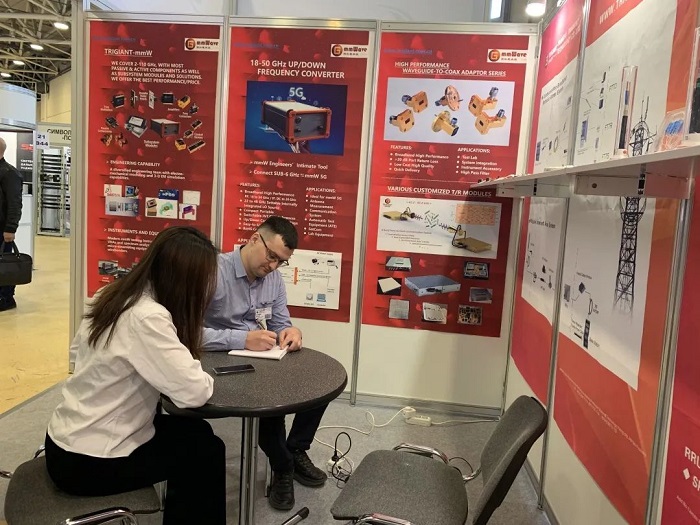 俊知技术携最新研发的毫米波产品、移动通信(有源/无源)传输解决方案及配套产品亮相俄罗斯莫斯科国际通讯展会,吸引了众多参会者的目光,很多客户咨询了我公司的天馈系统产品,通过样品展示和提供差异化按需定制服务,参会者对上下变频器、高性能波导同轴转换器和宽带混频器等毫米波产品也产生了浓厚的兴趣。