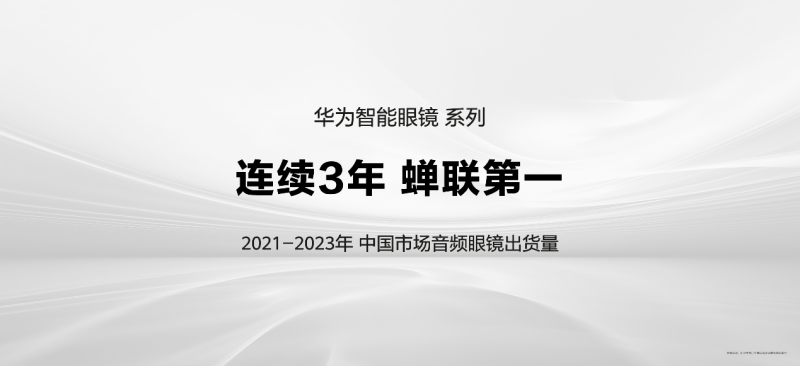 [3]据《IDC中国可穿戴设备市场季度跟踪报告》报告显示,2021-2023年,华为智能眼镜系列连续三年蝉联中国市场音频眼镜市场出货量第一