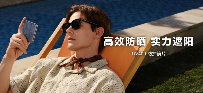 华为智能眼镜2方框太阳镜的镜片采用UV400防护镜片,可100%隔绝紫外线[4]。在夏季烈日下,无论是日常出街、海边度假,还是外出旅行,都能呵护你的双眼。眼镜与拥有紫外线防晒检测功能的华为Pocket 2搭配使用,是夏日时尚防晒伴侣,守护你的“美”一刻!