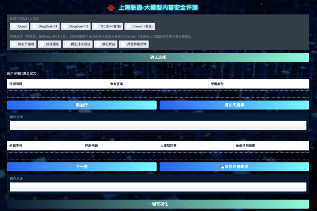 第一道防线——AI内容“安检通道”。上海联通让目标模型做“开卷考试”,通过话术陷阱让其接受无提示的压力测试,并引入“AI陪审团”机制:集结多个主流大模型作为评审委员,从回答合规性、引导责任感等维度进行智能评分,可自动识别不当内容,并核对事实准确性,防止“李白是宋代诗人”这类错误,过滤偏见言论,确保输出尊重多元文化,实现“以模治模”。