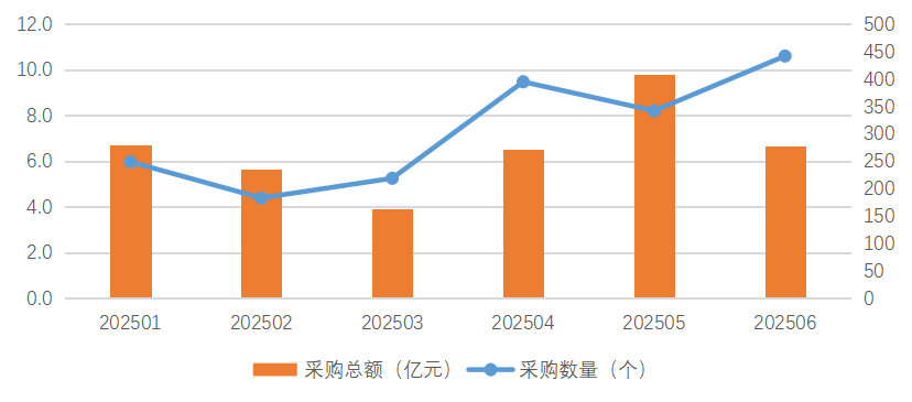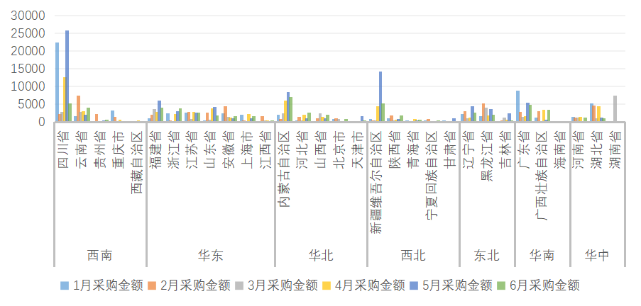图4:各省2025年1-6月采购金额统计(单位:万元)