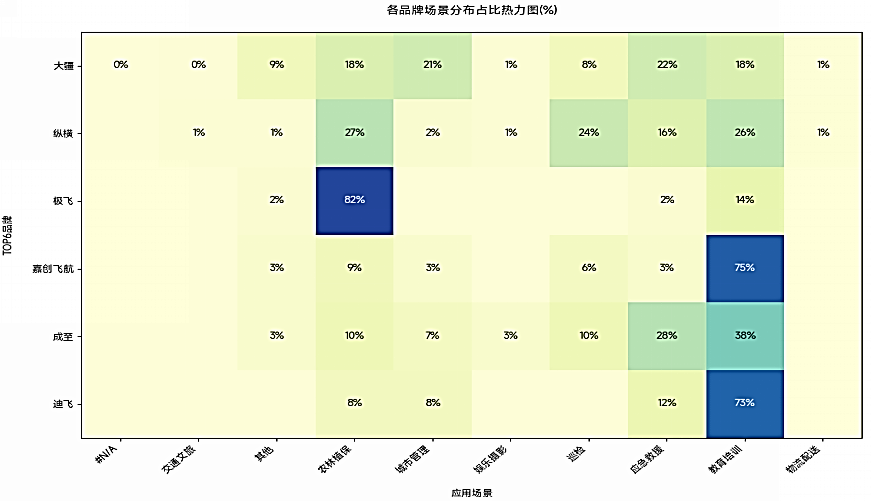 图5:2025年1-6月TOP6品牌应用场景分布热力图
