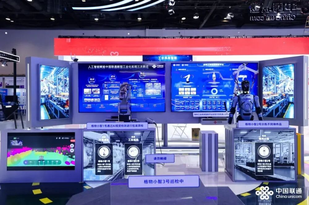 中国联通重点展示“AI基建、AI科技、AI产业、AI安全”全景生态。其新型一体化智算基础设施(AI Infra)具备“全域供给、全栈自主”能力,融合AIDC、AI算力、AINet等资源,现场展出的高铁数字孪生智慧运营系统,通过“一车一模型、一人一画像”实现用户感知异常自动定位。