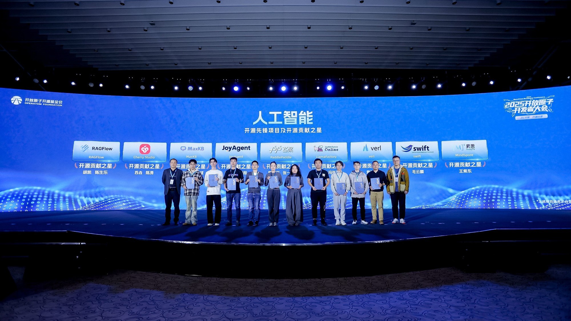 活跃的开源项目是开源生态核心驱动力,而开发者们则是推动项目持续发展的关键所在。大会举行了“中国开源创新力量致谢仪式”,向操作系统、数据库、人工智能三大技术领域28个开源先锋项目中作出卓越贡献的47位开发者致谢。