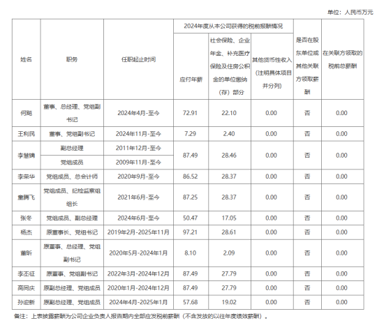 具体信息请见链接:2024年度中央企业负责人薪酬信息披露