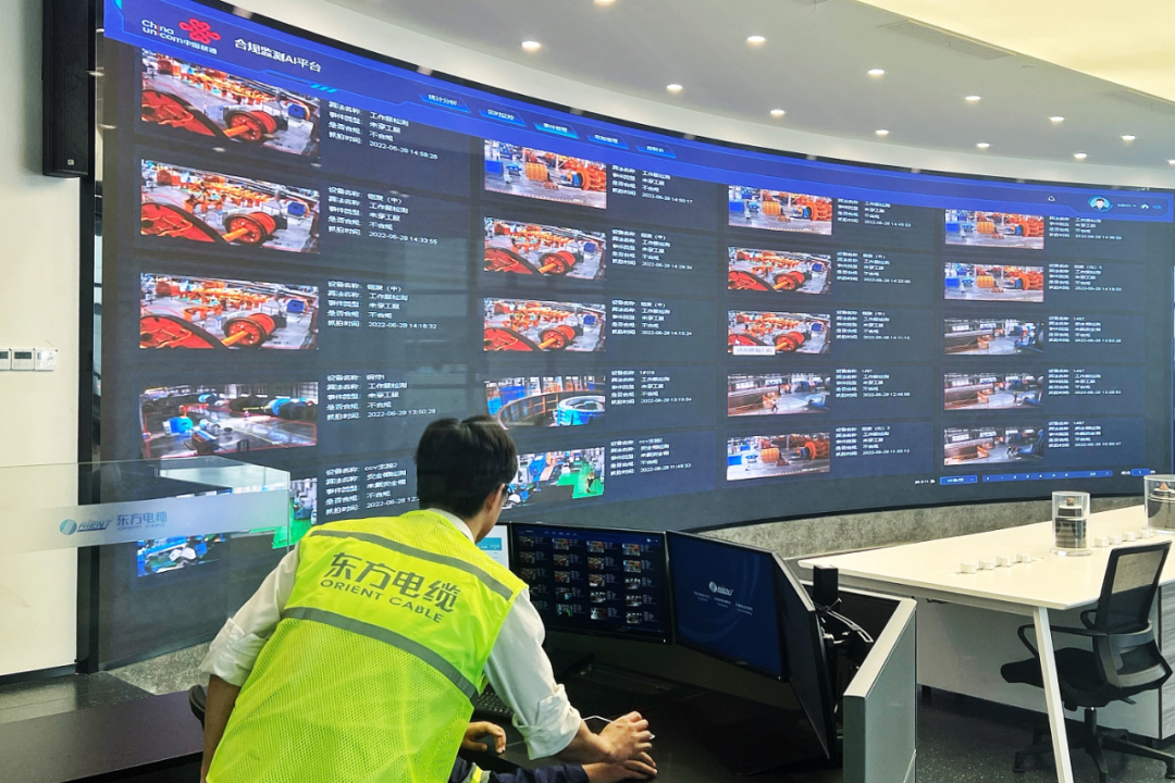 “未来工厂”还通过联通5G网络全覆盖,实现海缆立式成缆旋转生产实时监控;采用工业视觉+人工智能算法,实现传统机械仪表数据采集、分析与安全预警,为生产提供全数据支撑。