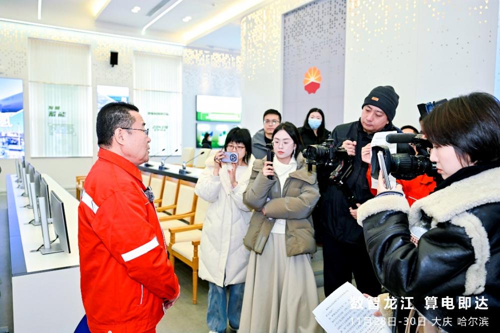 图、负责人为媒体介绍大庆油田低碳转型实践