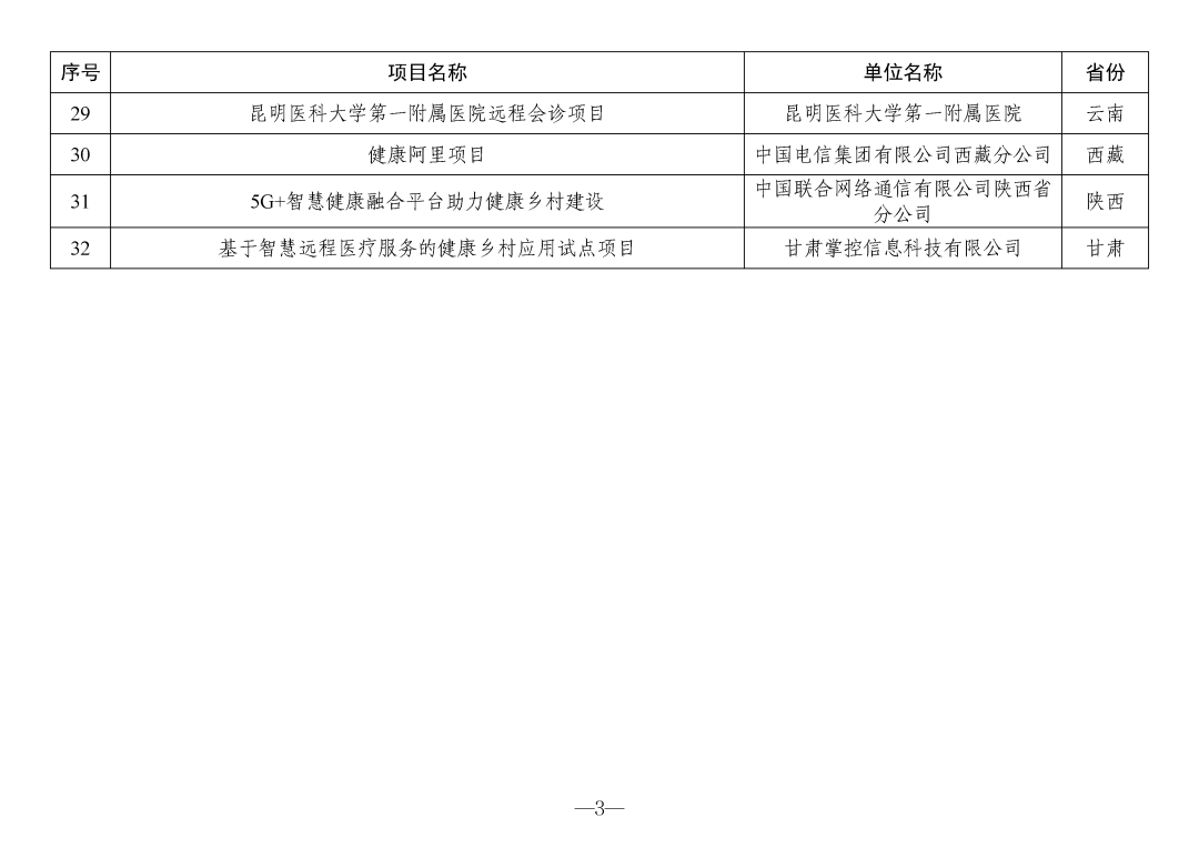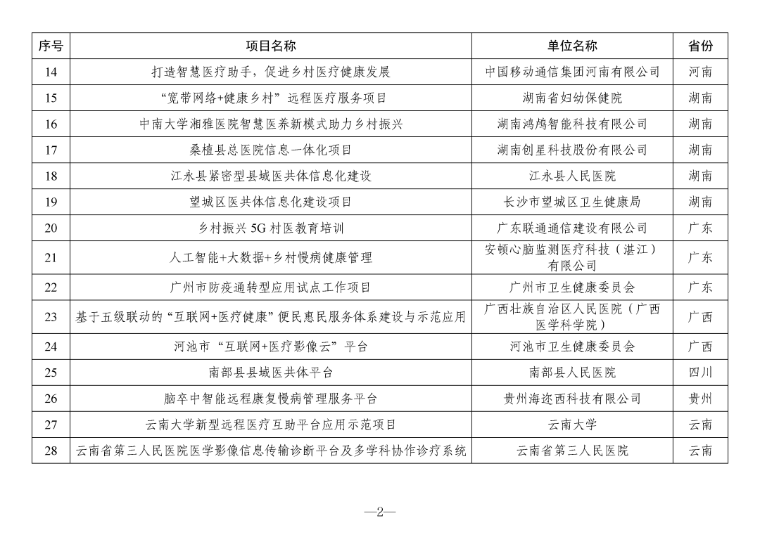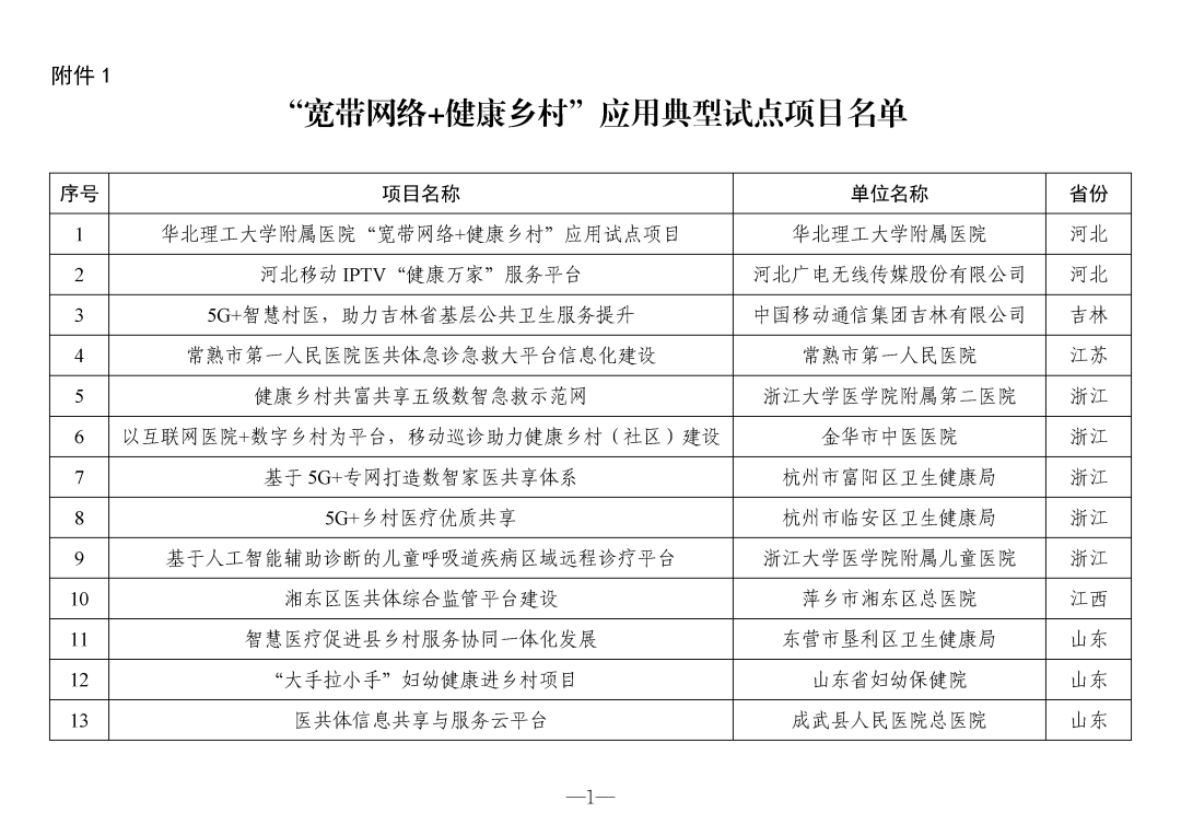 1.“宽带网络+健康乡村”应用典型试点项目名单