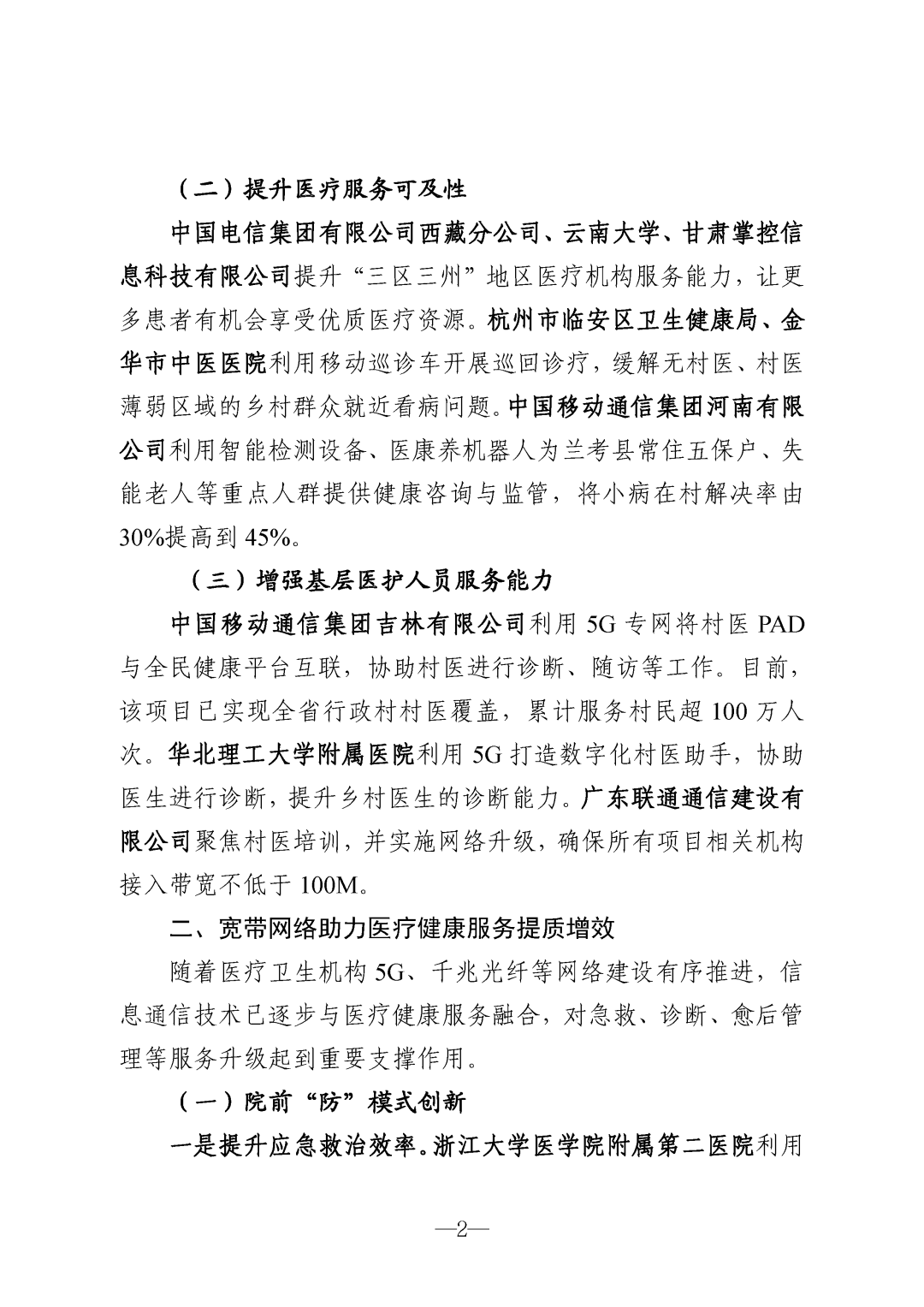 2.“宽带网络+健康乡村”应用典型试点项目经验做法和成效